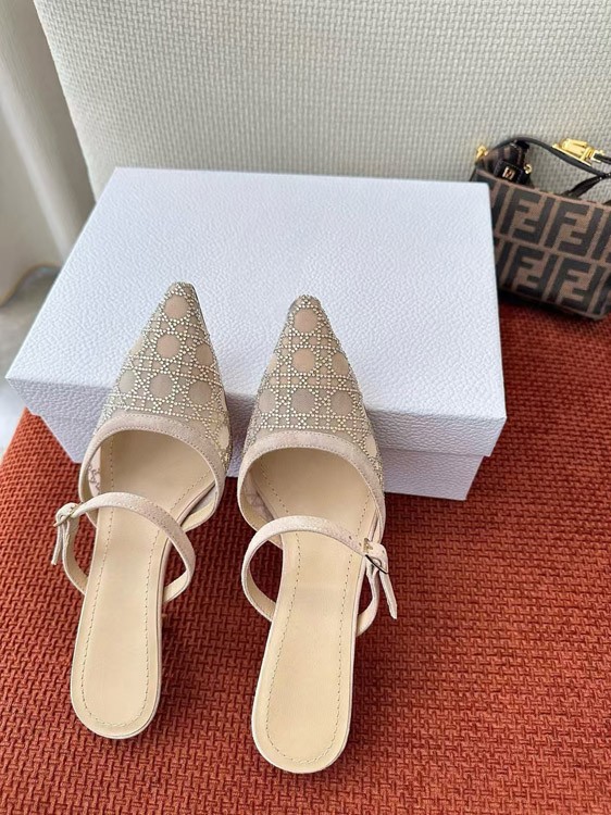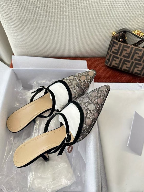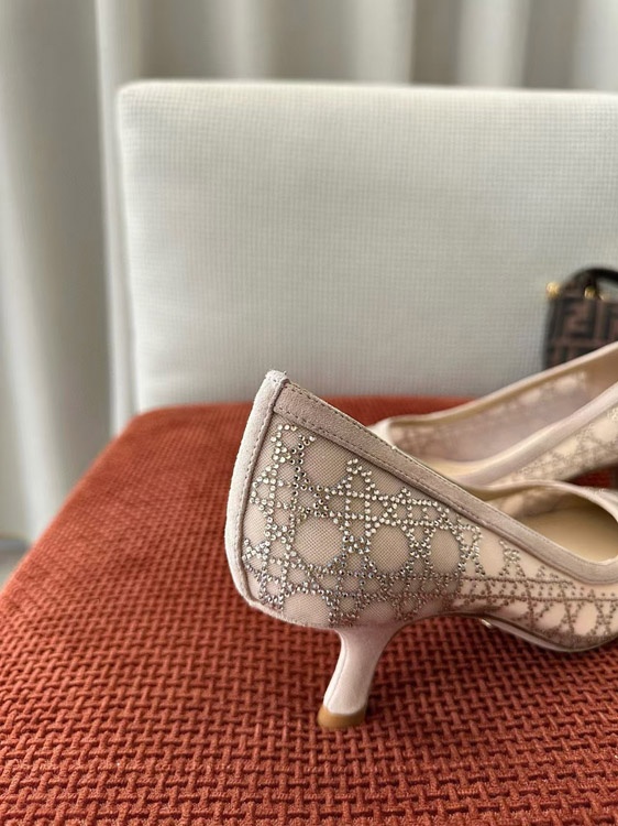 DIOR Capture pointed-toe mesh slingback kitten heels with rhinestone embellishments-5207